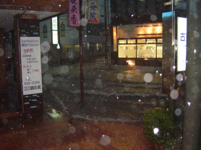 最後にはこうなりました。病院の2階から撮ったんですが、病院前の花壇がすっかり水の中です。数台の車が動けなくなっていました。